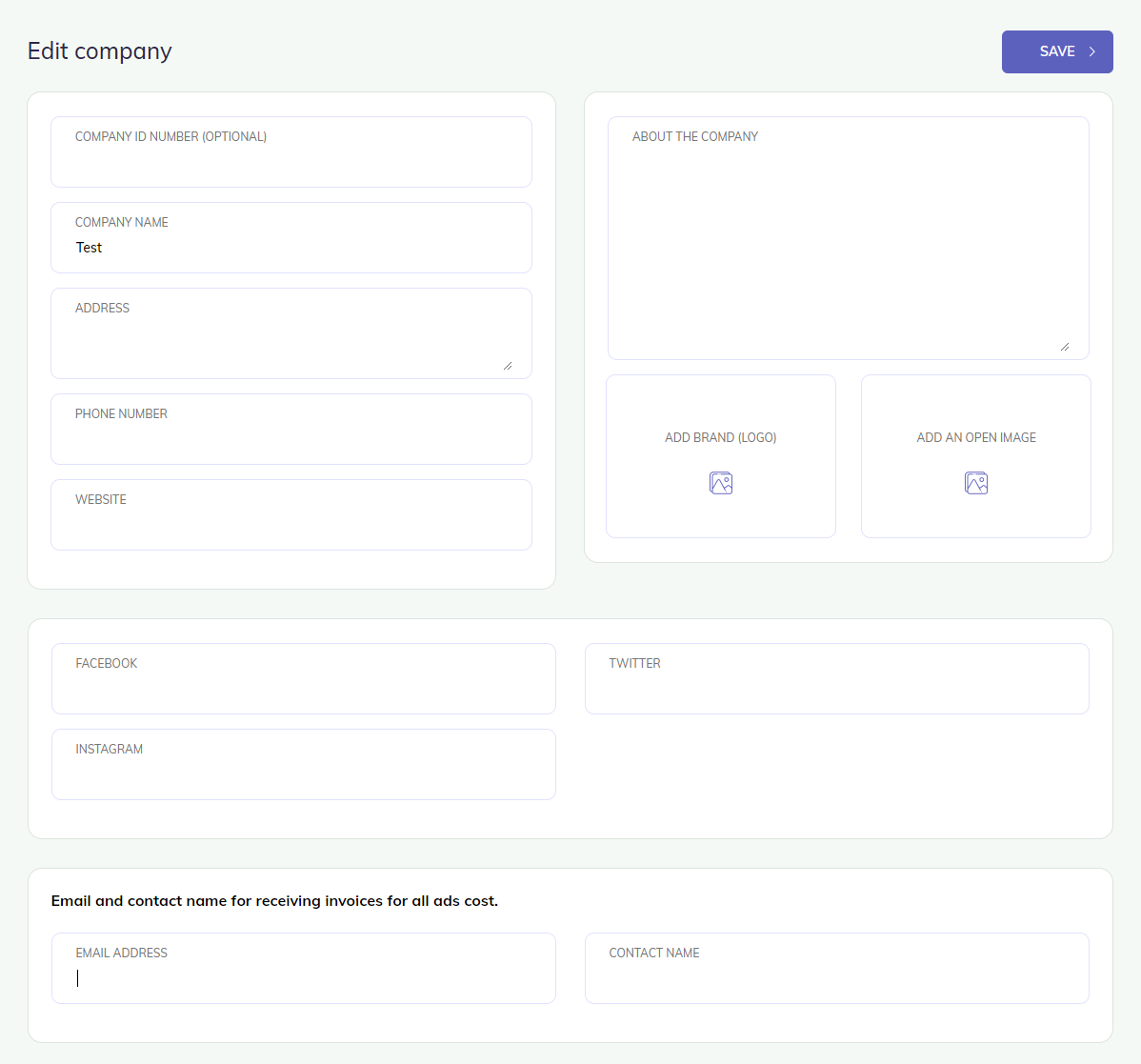 When user have filled out everything about the company you go to SAVE